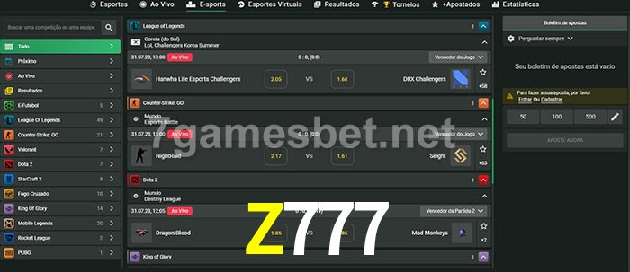 O Z777 oferece uma grande seleção de opções de apostas em e-sports com probabilidades competitivas